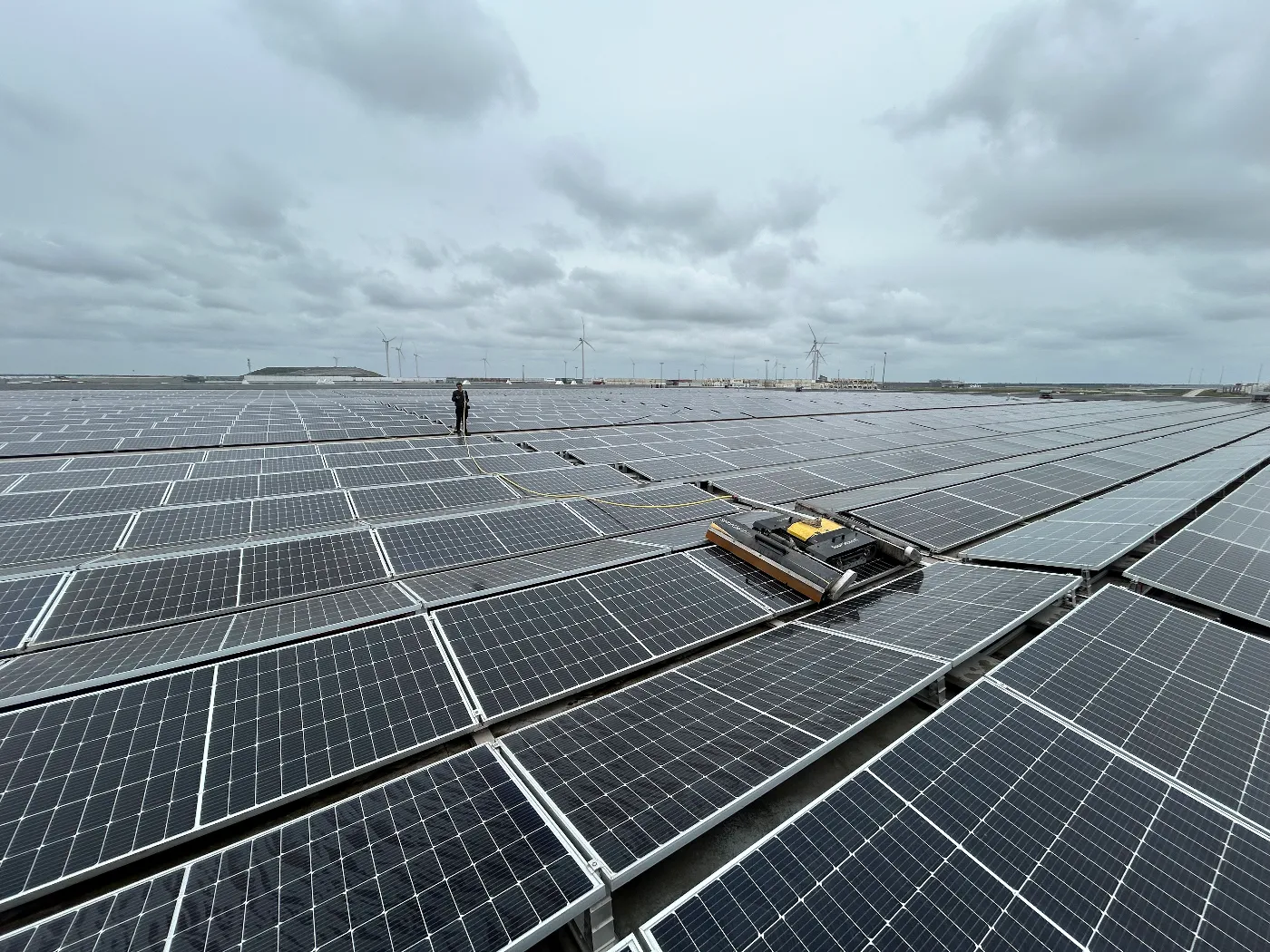 For large solar parks or extensive roof installations, Solarco deploys robot cleaners. These robots run on batteries and are certified by renowned module manufacturers. The robot can quickly and evenly clean large installations of solar panels without damaging the panels.